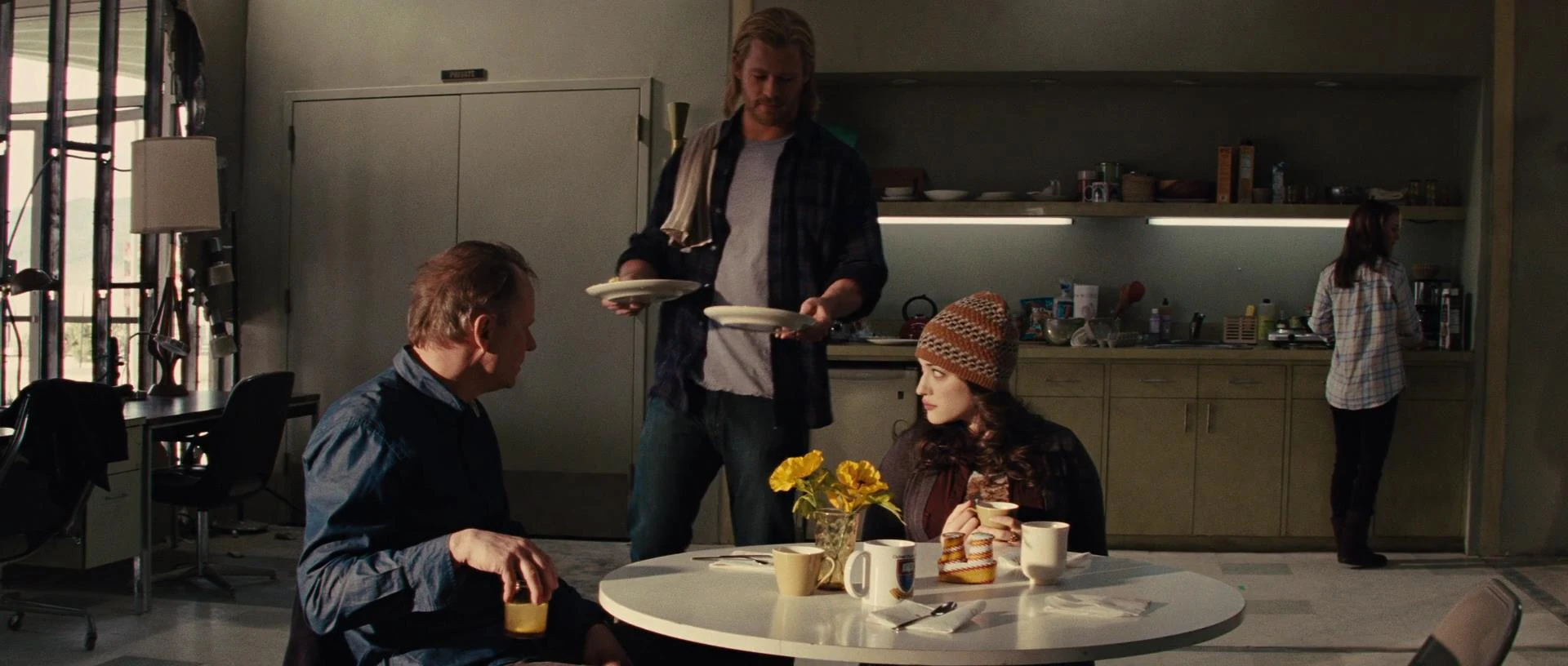 Jane e sua equipe tomando café da manhã com Thor
